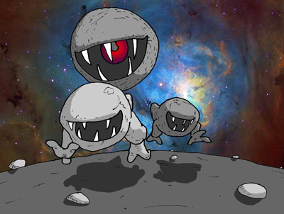 adult to a moon-sized matriarch that presumably lays the rock-like eggs.